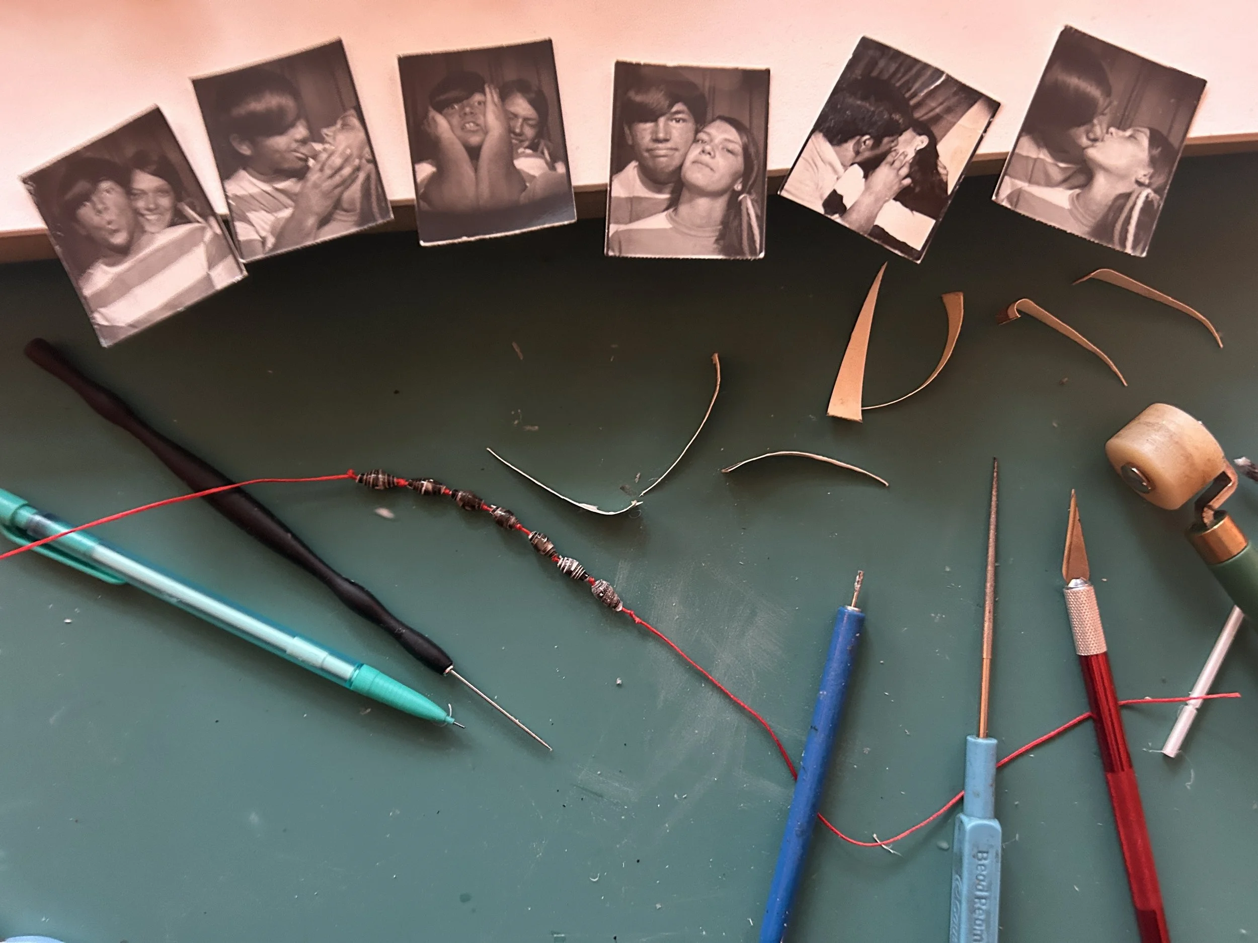 Rosary made of photo booth pictures of my parents in their teens before I was born while they were in love. Then blessed by a Catholic priest at Saint Joseph Cathedral (Columbus, Ohio) upon giving confession after four decades.