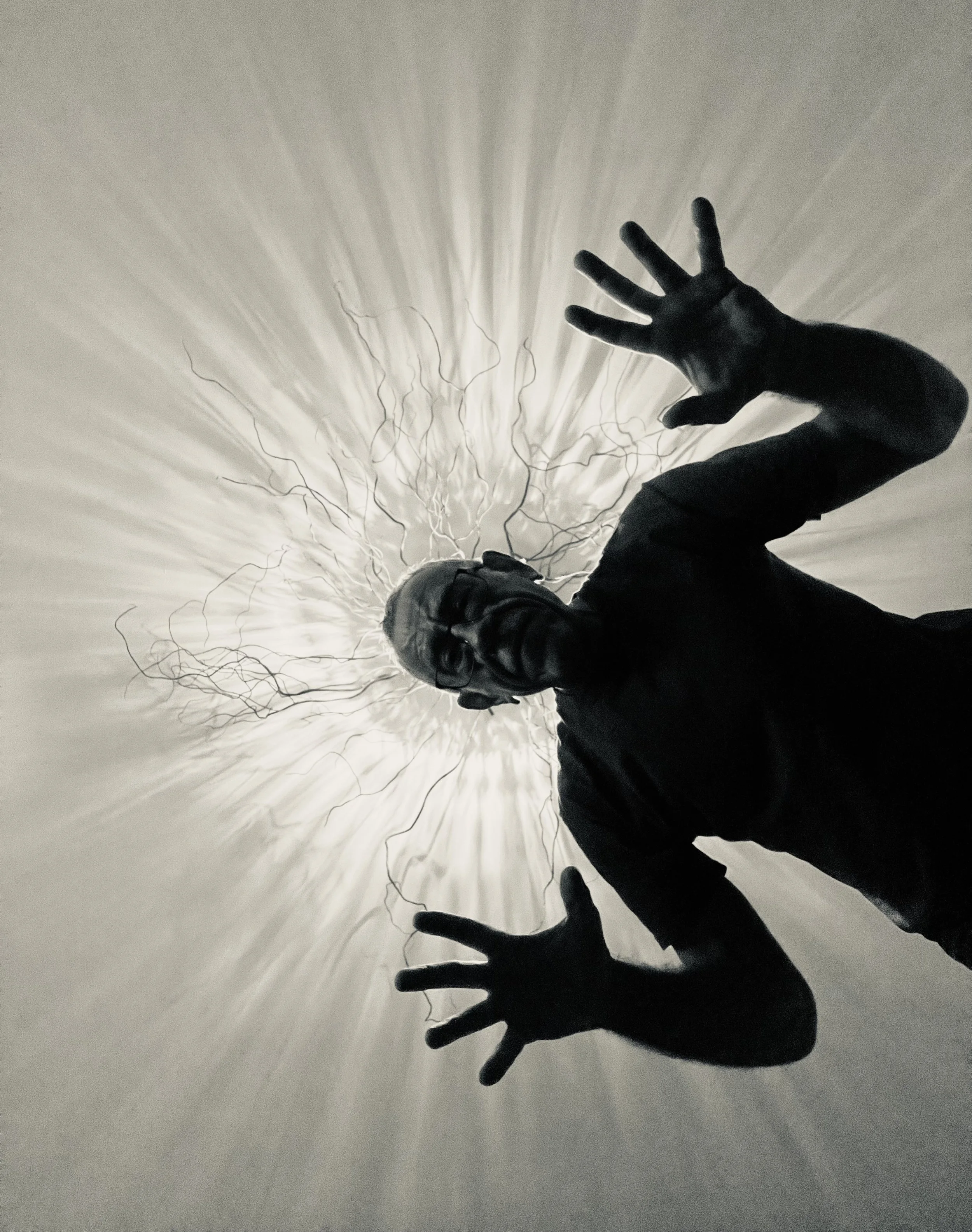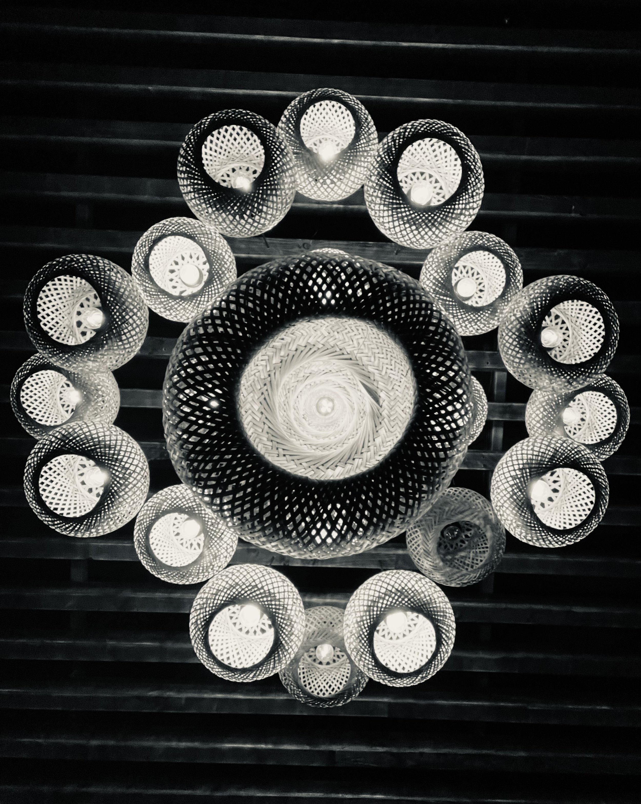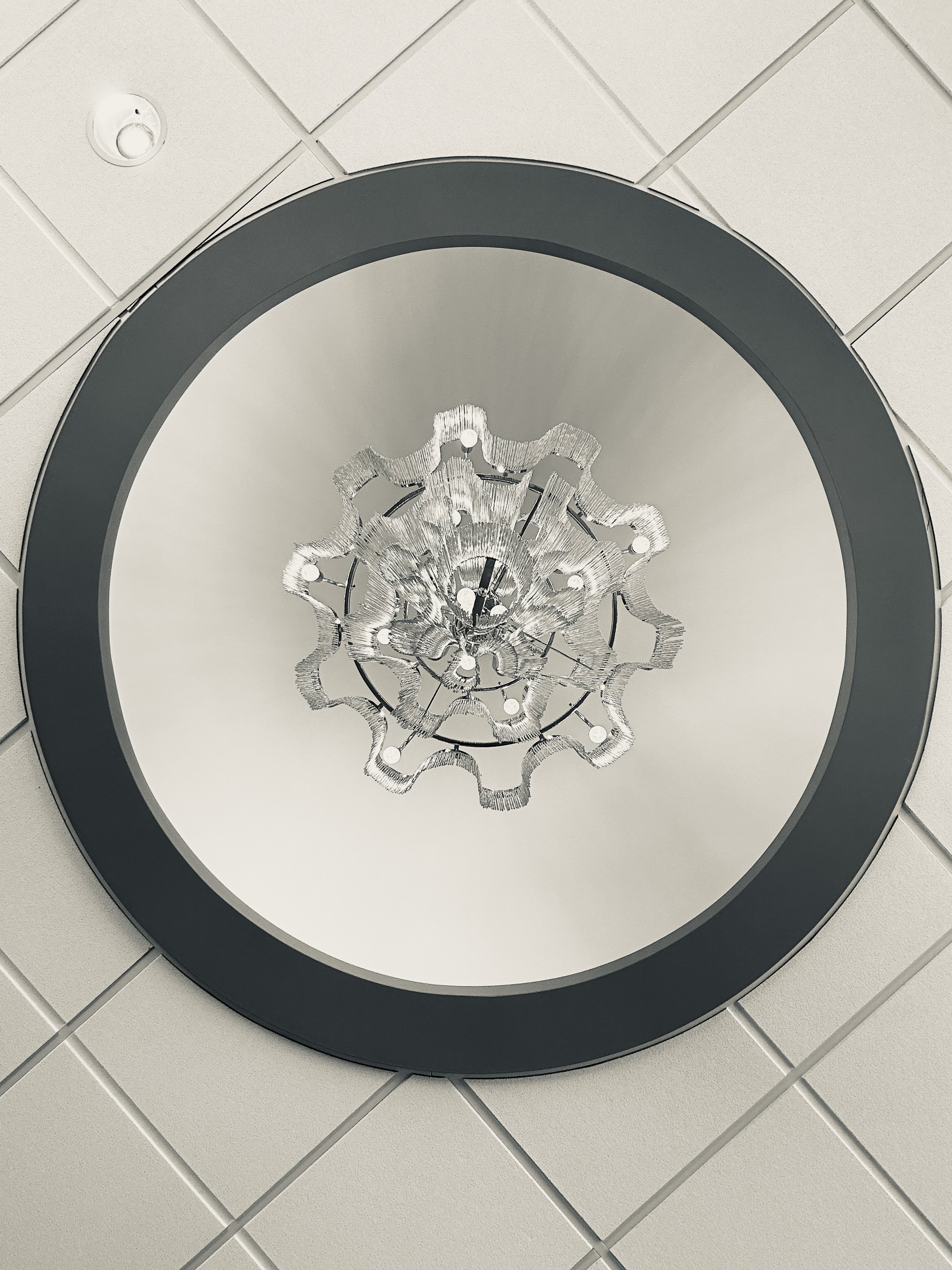 Naza and Ian in elevator shaft at L'Antiga Esquerra de''Eixample; Barcelona, Spain 2022